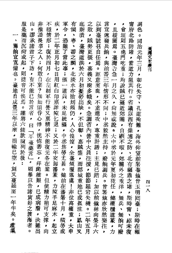 有不能言者曰「平臺藥言」,服是藥而沉疴或起 治臺必告錄卷五 台灣文獻史料叢刊 -
