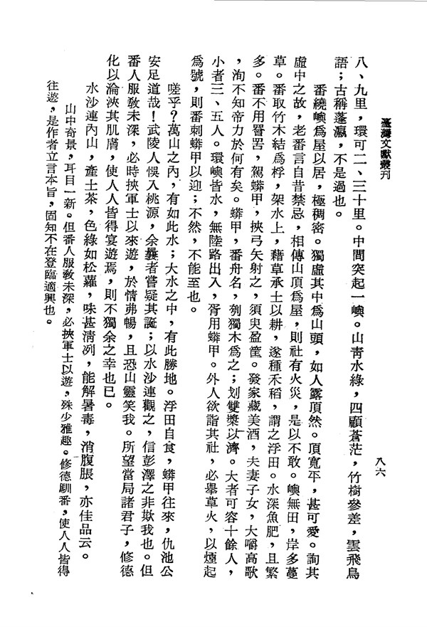 崇爻八社環境隱蔽,群山環繞 治臺必告錄卷一 台灣文獻史料叢刊 -