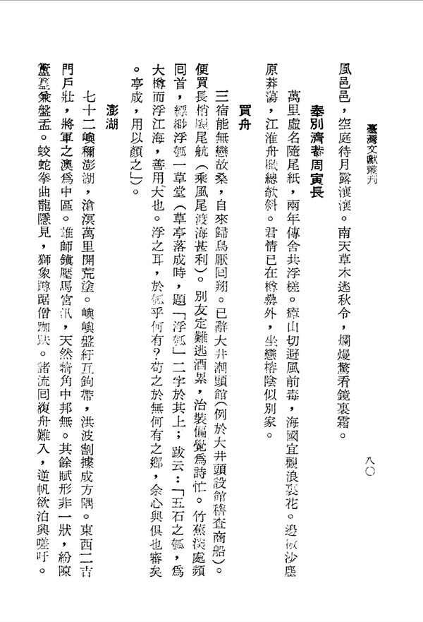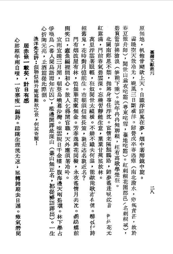 瘴山切避風前毒 赤崁集卷四 台灣文獻史料叢刊 -