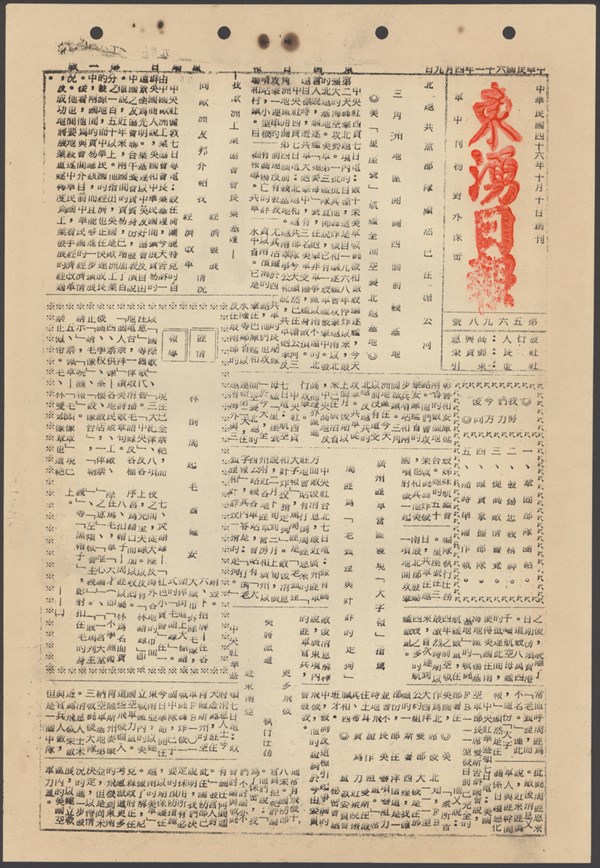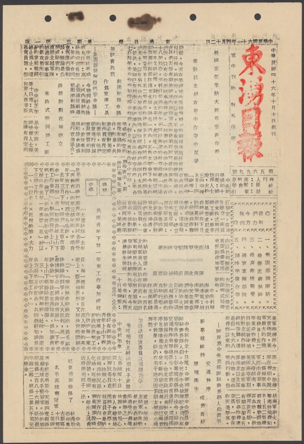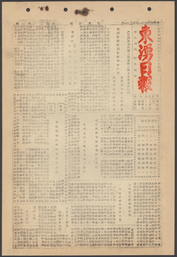 中華民國61年4月9日東湧日報第五六九八期第一版 -