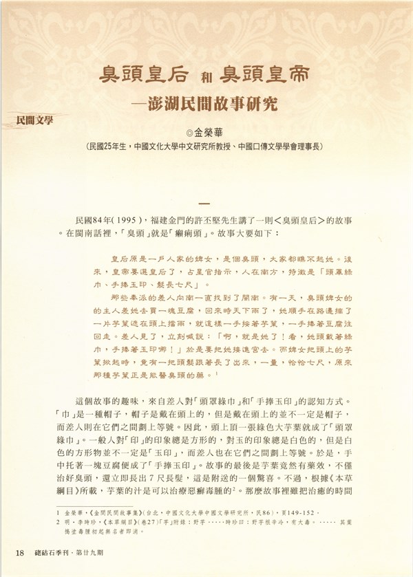 《硓古石》季刊第29期〈「臭頭皇后和臭頭皇帝-澎湖民間故事研究」〉 -