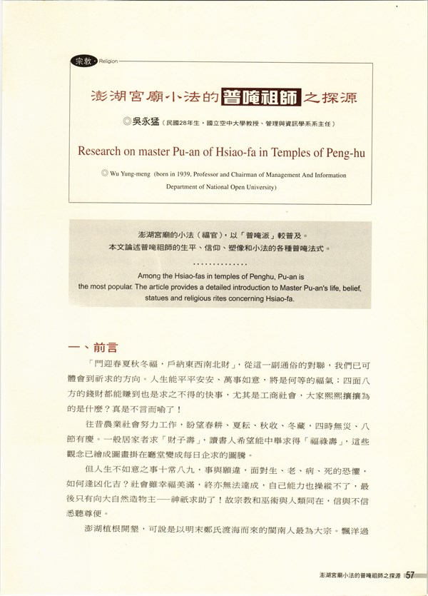 《硓古石》季刊第16期〈澎湖宮廟小法的普唵祖師之探源〉 -