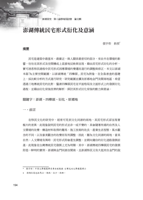《澎湖研究學術研討會論文輯》第十屆〈澎湖傳統民宅形式衍化及意涵〉 -