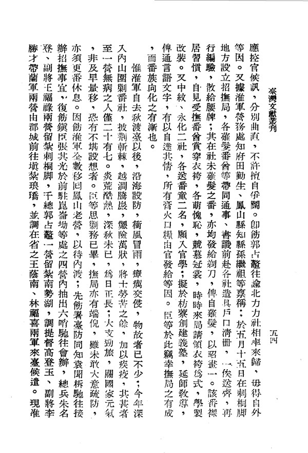開山撫番之困難 福建臺灣奏摺 台灣文獻史料叢刊 -