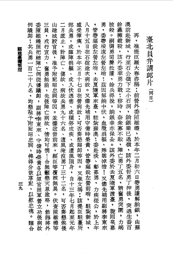 淮軍歷經艱苦卻不以之為多 福建臺灣奏摺 台灣文獻史料叢刊 -