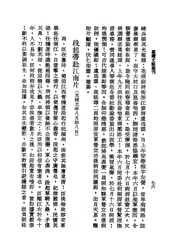 丞感受瘴癘,鮑復康暫領其軍,到時張天德已紮營 福建臺灣奏摺 台灣文獻史料叢刊 -
