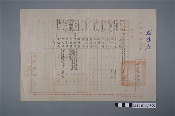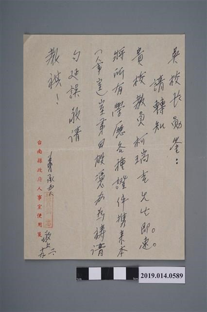 臺南縣政府人事室承辦人劉忠寫給新化國民學校校長之信函 -