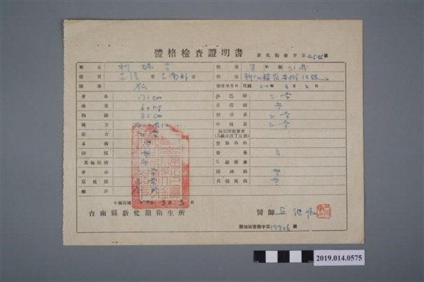 柯瑞吉民國50年3月3日體格檢查證明書 -