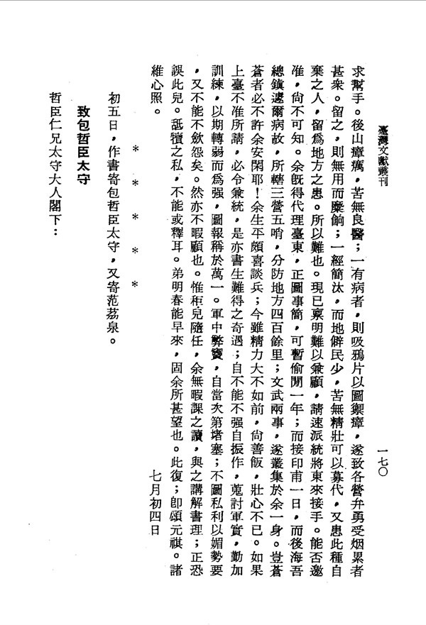 往來瘴厲頭痛腹洩,請假醫治 臺灣日記與禀啟卷一 台灣文獻史料叢刊 -