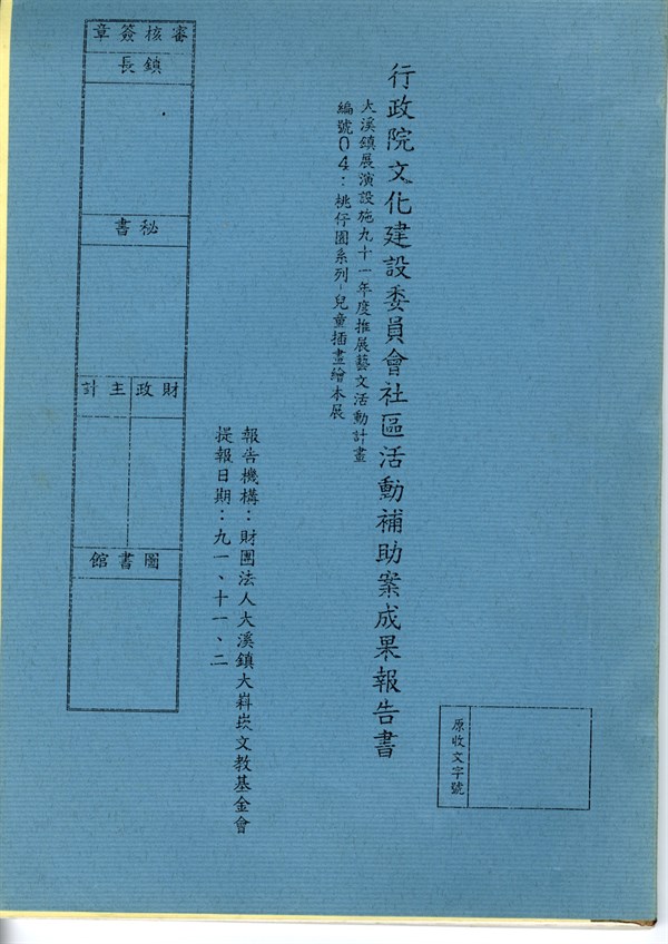 行政院文化建設委員會社區活動補助案成果報告書大溪鎮展演設施九十一年度推展藝文活動計畫編號04:桃仔園系列─兒童插畫繪本展 -