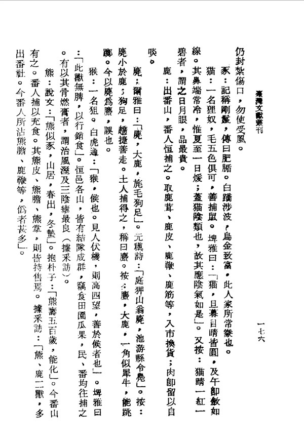 獺肝燒服可治魚鯁久嗽,其爪亦可療魚鯁 恒春縣志卷九 台灣文獻史料叢刊 -