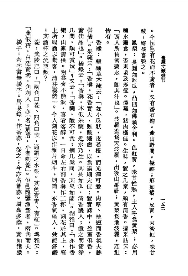 鳳梨味甘性熱,用鹽水灑再吃,否則易有痧症 恒春縣志卷九 台灣文獻史料叢刊 -