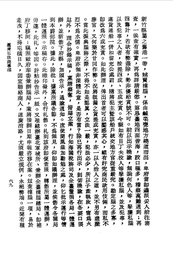 官員依照洋藥章程,分派巡丁查緝私熬樟腦販賣者 臺灣私法商事編 台灣文獻史料叢刊 -