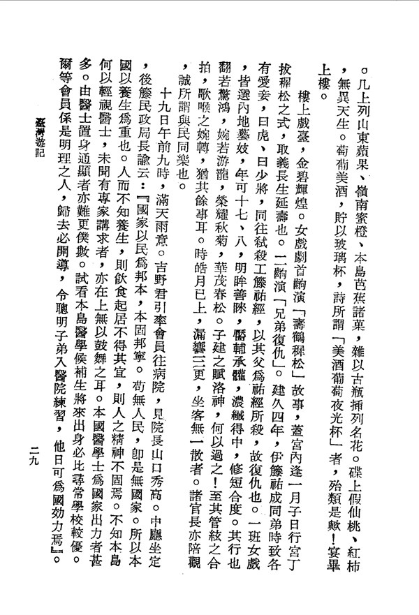 後籐新平民政局長表示要重視養生,讓聰明子弟入醫院學習 臺灣遊記 台灣文獻史料叢刊 -