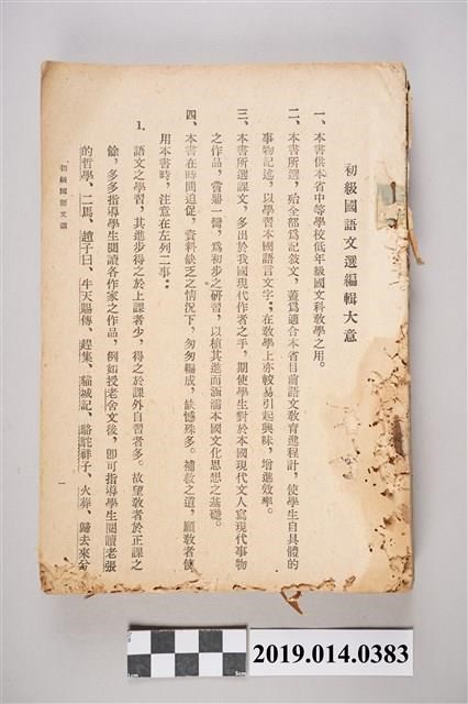 臺灣省行政長官公署教育處編《初級國語文選》 -