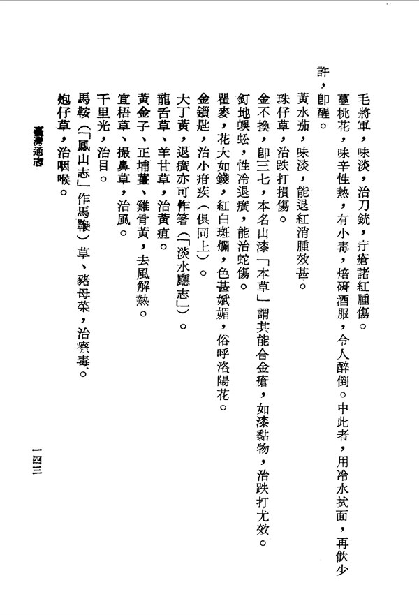 山芙蓉、雞血刺等可治癰 臺灣通志 台灣文獻史料叢刊 -