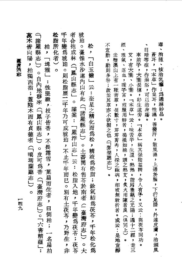 蔦松葉、過溝菜、冷飯籐、山荖葉、蟲草均可治潰爛 臺灣通志 台灣文獻史料叢刊 -