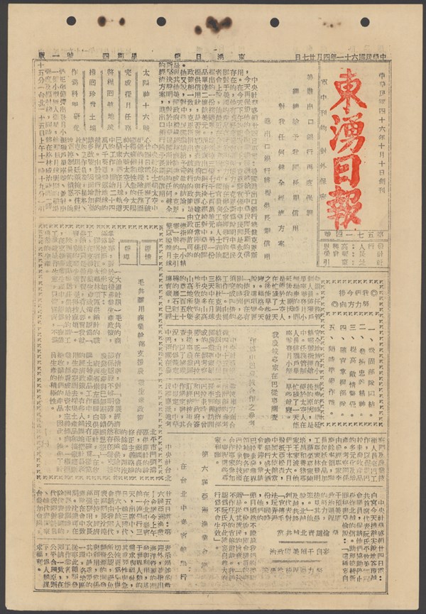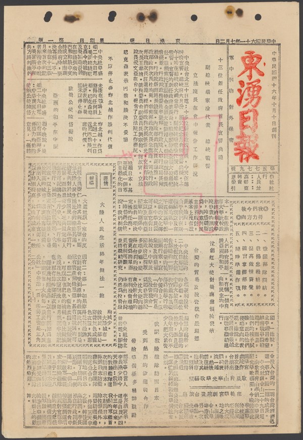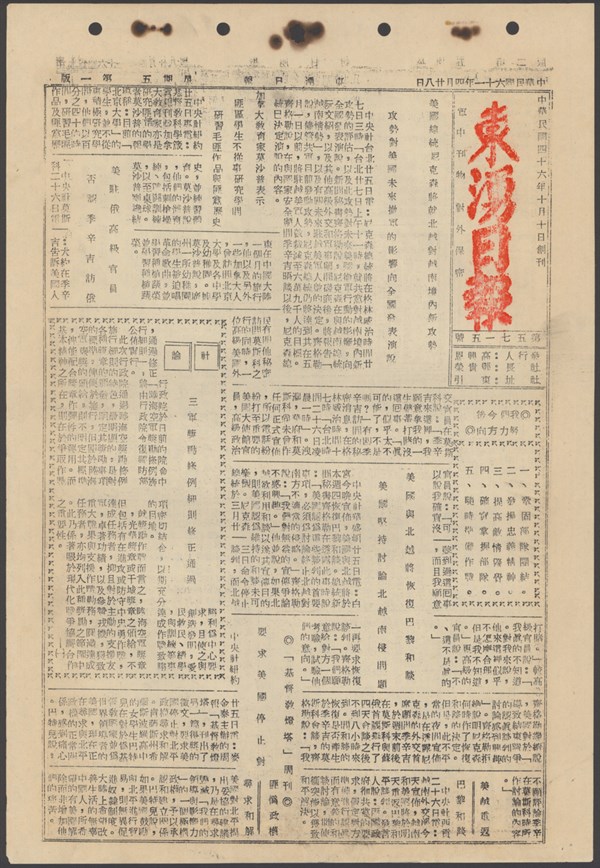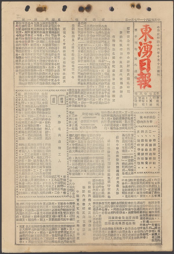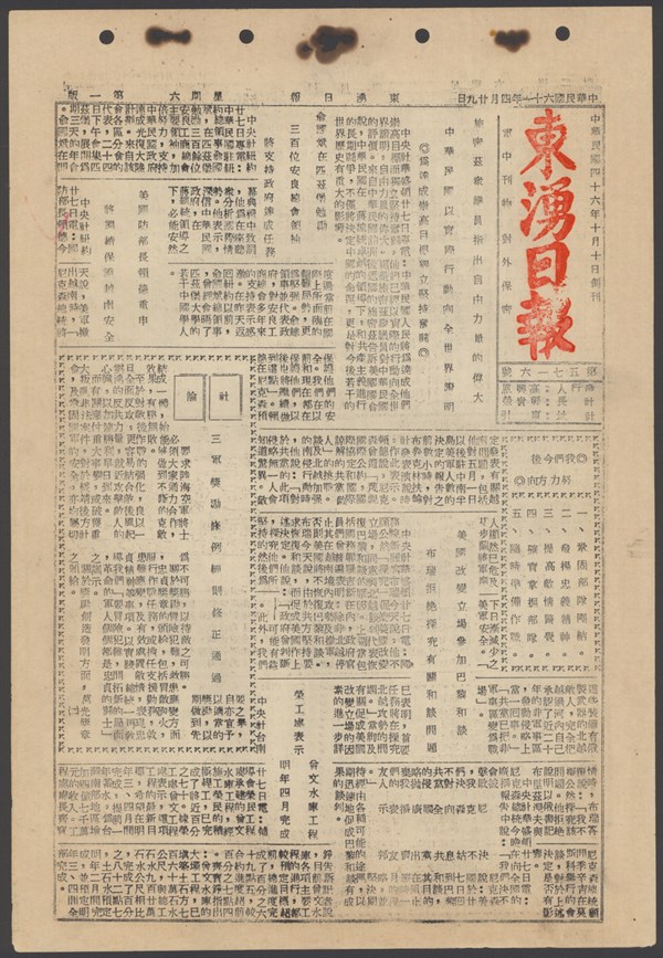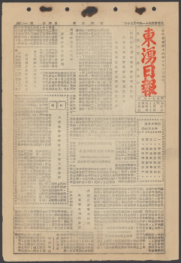 中華民國61年4月30日東湧日報第五七一七期第一版 中華民國61年4月30日東湧日報第五七一七期第一版