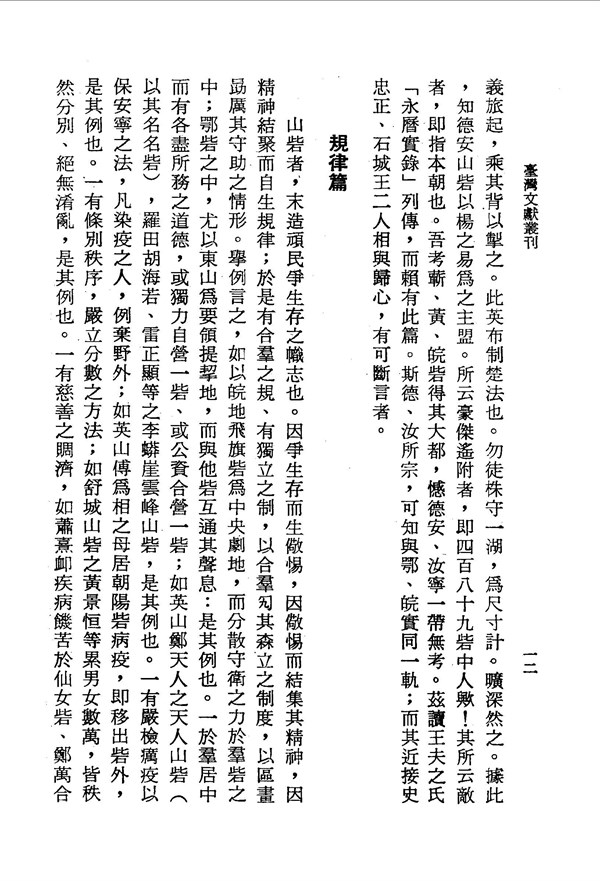 凡感染疫症的人都需移至野外 蘄黃四十八砦紀事卷一 台灣文獻史料叢刊 -