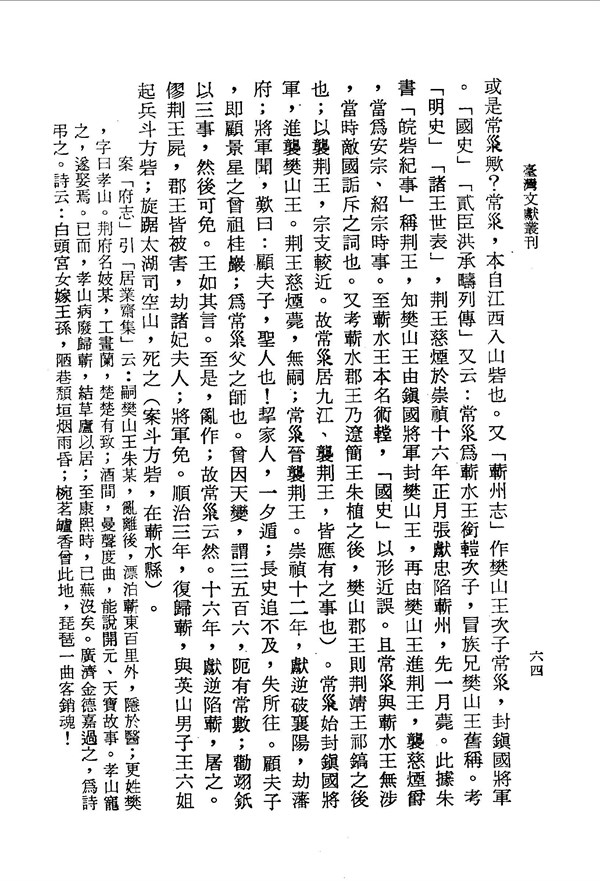 樊孝山隱居從醫 蘄黃四十八砦紀事卷三 台灣文獻史料叢刊 -
