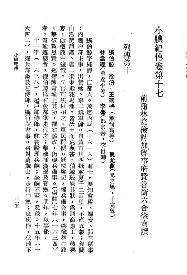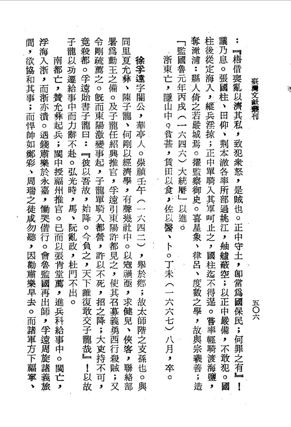 張伯鯨因遇寒流而足疾發作 小腆紀傳目錄 台灣文獻史料叢刊 -