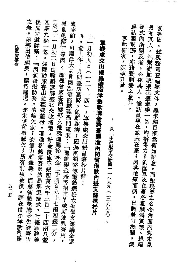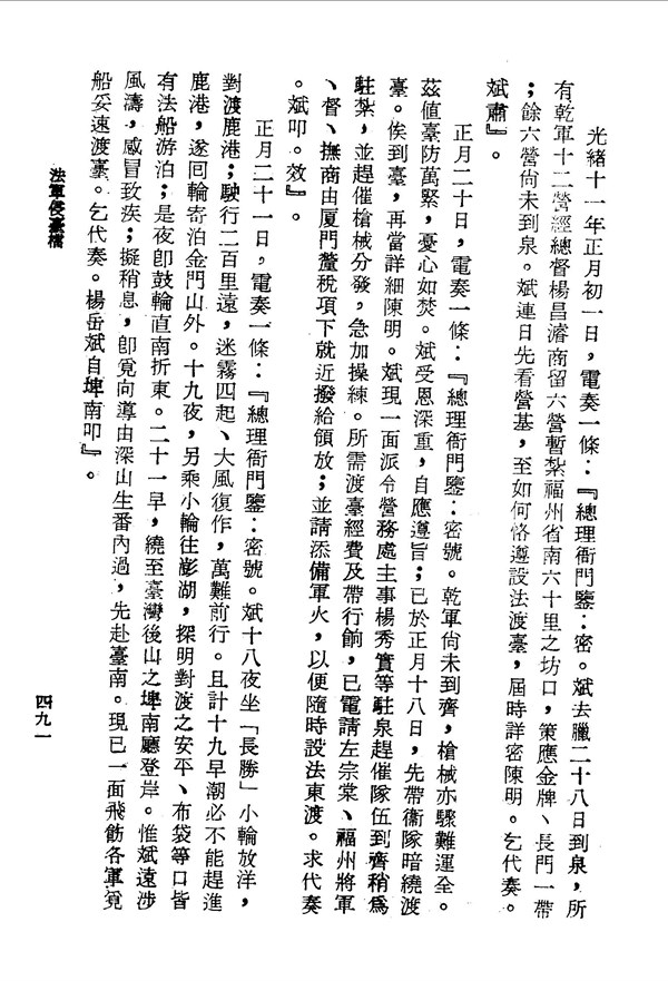 楊岳斌來臺時因遇風浪而患上感冒 法軍侵臺檔 台灣文獻史料叢刊 -