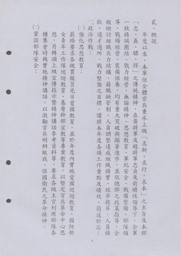 陸軍反共救國軍兼東引守備區指揮部簡報(1987)-思想精神教育 -