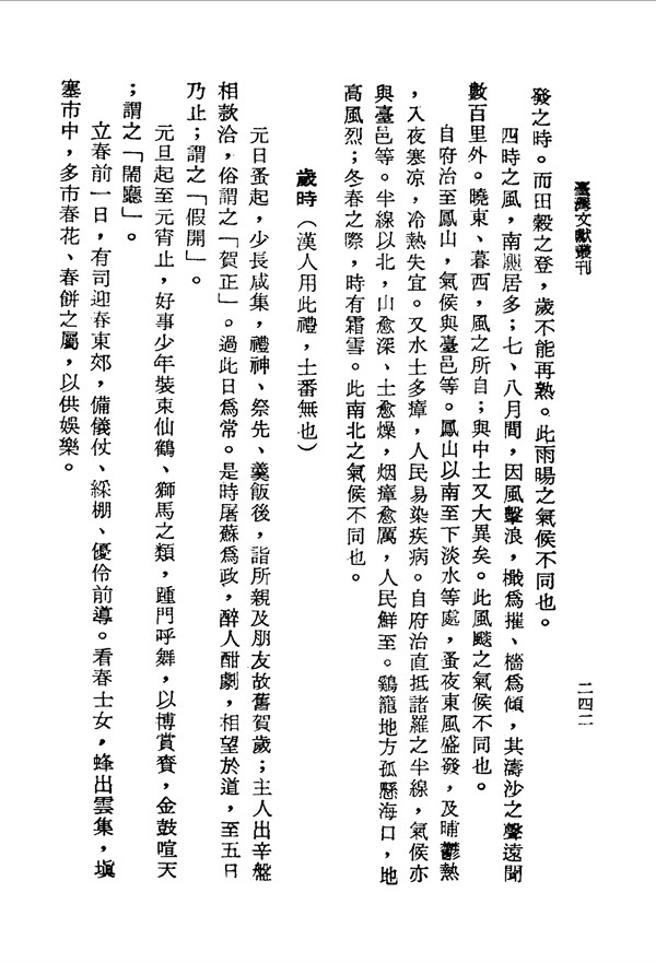 台灣由南至北氣候之差異 重修臺灣府志卷七 台灣文獻史料叢刊 -