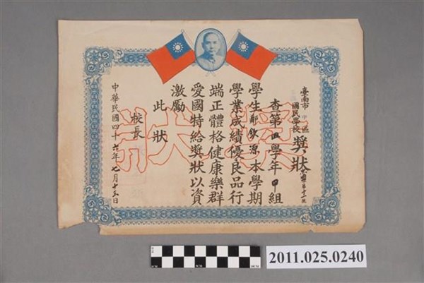 鄭欽源臺南市忠義國民學校獎狀 -