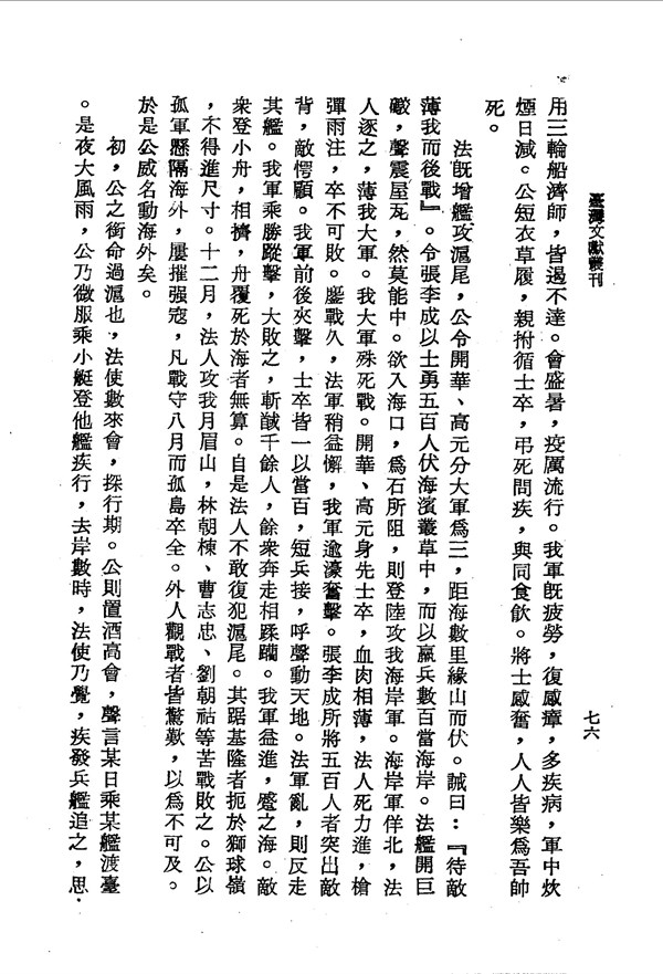 疫厲流行,公親拊士卒 劉壯肅公奏議卷首 台灣文獻史料叢刊 -