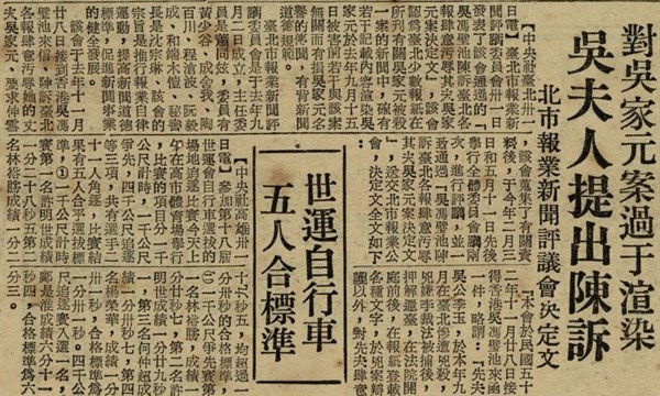 對吳家元案過于渲染,吳夫人提出陳訴 -