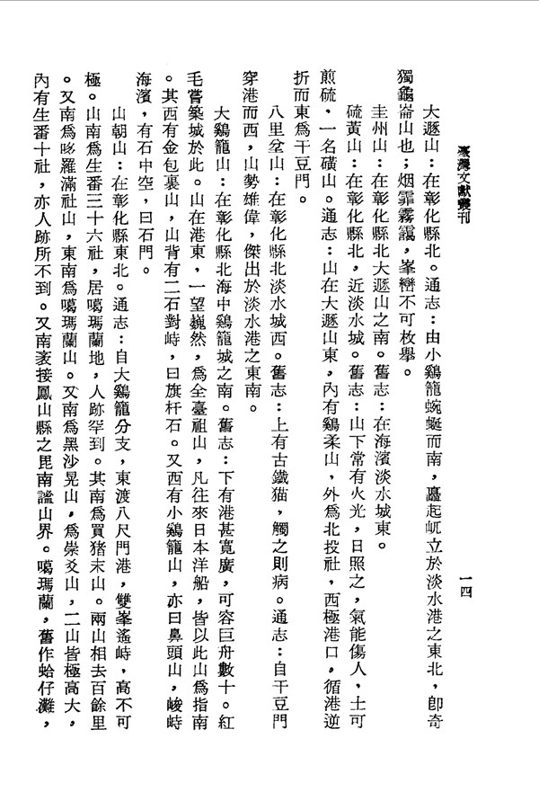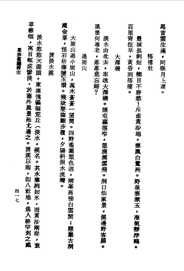 淡水溪人跡罕,陰雲瘴癘,故多視為畏途 重修臺灣府志卷十 台灣文獻史料叢刊 -