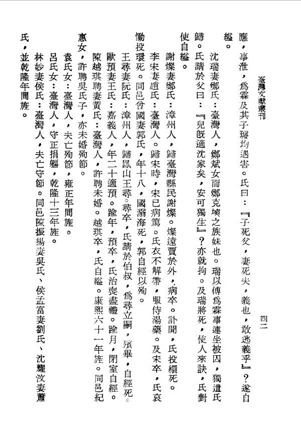 李宋妻趙氏夫死投環死,曾國妻郭氏夫死殉 清一統志臺灣府 台灣文獻史料叢刊 -