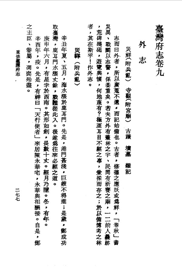 辛酉年有疫 重修臺灣府志卷九 台灣文獻史料叢刊 -