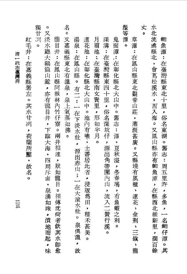 龍目井兩井相連,沈疴者飲其水即愈 清一統志臺灣府 台灣文獻史料叢刊 -