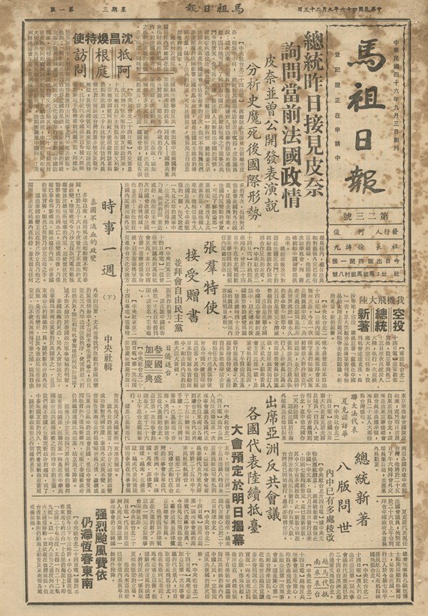 中華民國46年9月25日 馬祖日報 第二三號 第三版 -