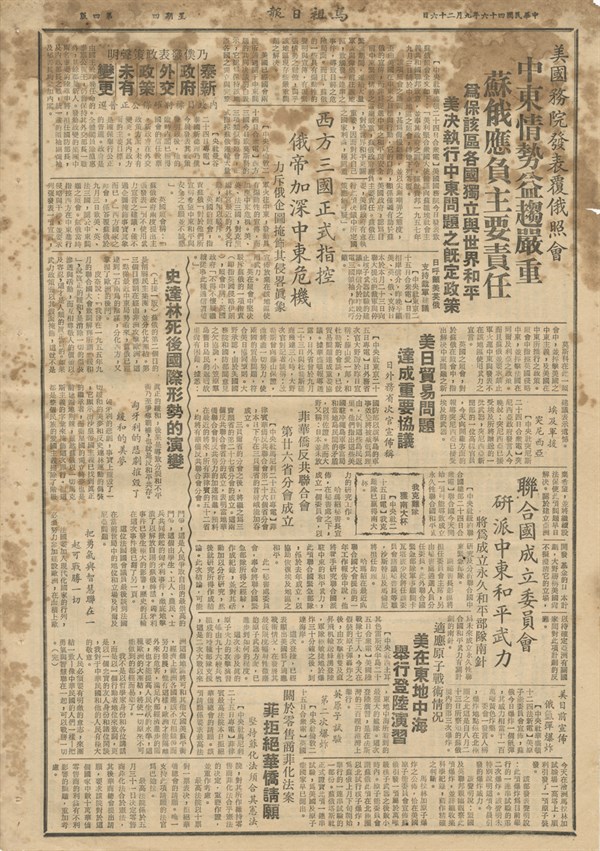中華民國46年9月26日 馬祖日報 第二四號 第四版 -