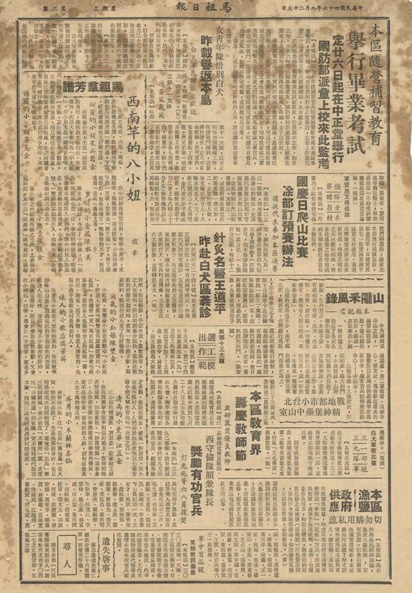 中華民國46年9月26日 馬祖日報 第二四號 第三版 -