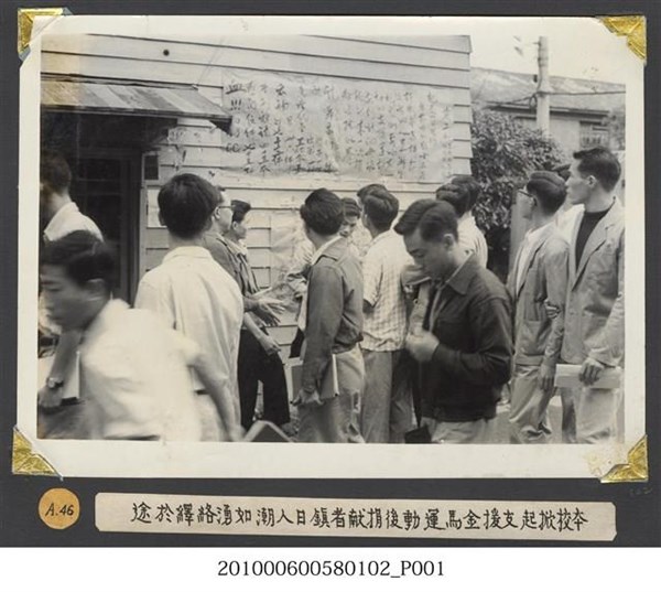 臺灣省立師範大學支援金馬運動委員會公佈捐獻成果情形照片 -