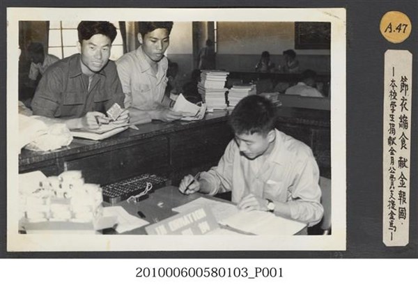臺灣省立師範大學支援金馬運動委員會捐獻活動留影 -