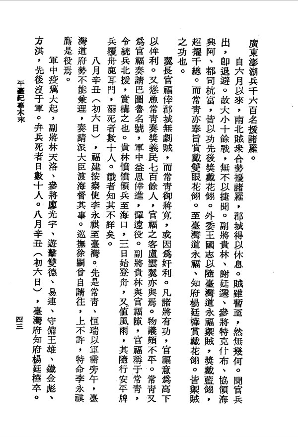 軍中疫癘,兵死者日數十人 平臺紀事本末 台灣文獻史料叢刊 -