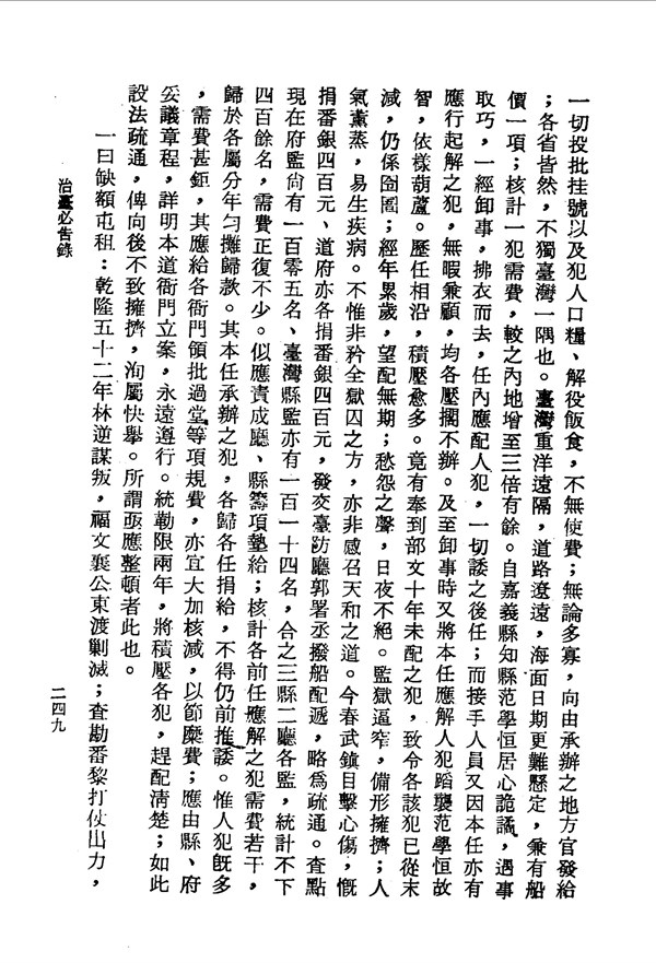 監獄狹窄人氣薰蒸易生疾病 治臺必告錄卷三 台灣文獻史料叢刊