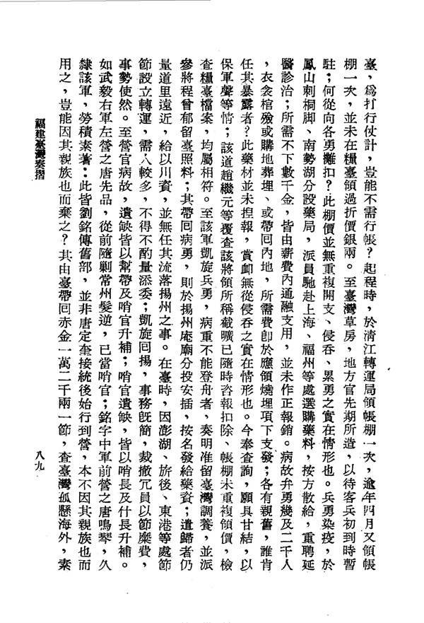 方策勛復同銘、健兩軍,勦生番後瘴疾復作 劉壯肅公奏議卷九 台灣文獻史料叢刊 -