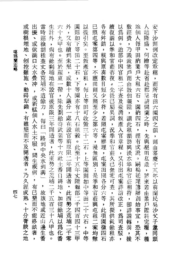巡檢胡桂考查丈量各荒地不遺餘力 噶瑪蘭志略卷五 台灣文獻史料叢刊 -