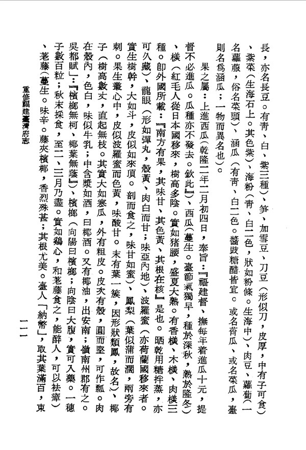 木瓜能療足疾 重修福建臺灣府志卷六 台灣文獻史料叢刊 -