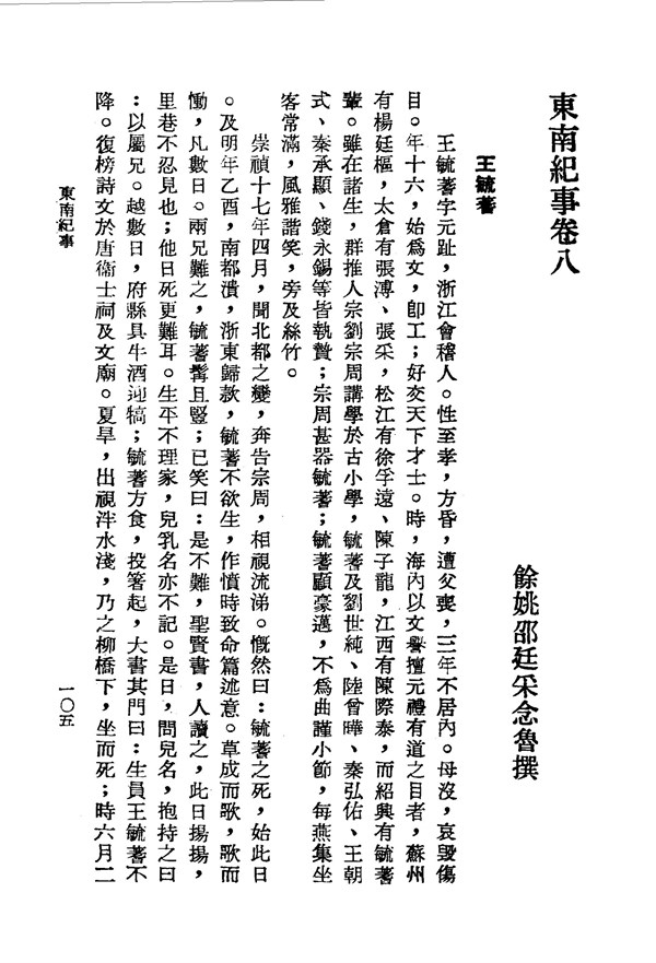 王毓蓍很孝順,父喪三年不居內,母沒哀傷過度傷目 東南紀事卷八 台灣文獻史料叢刊 -