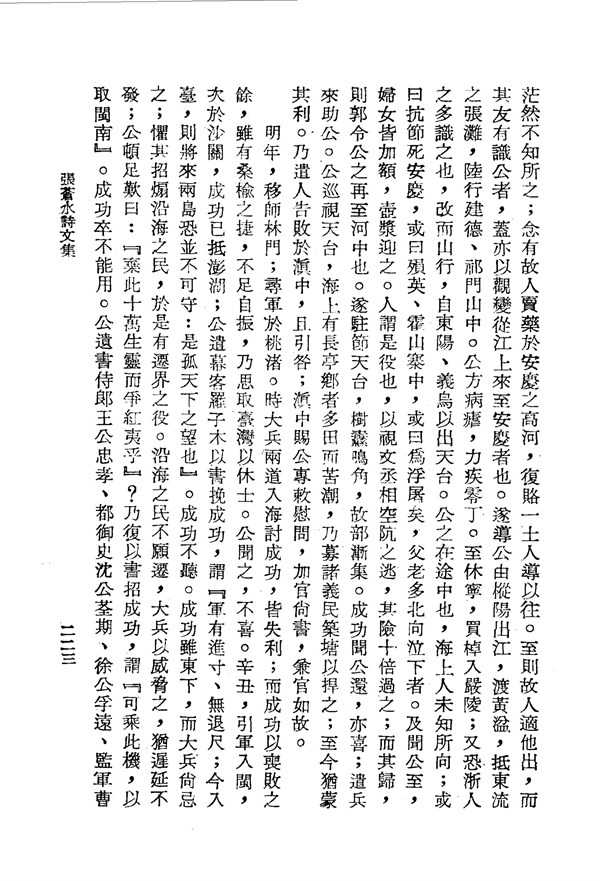 子木因慟哭過度而嘔血 張蒼水詩文集附錄一 台灣文獻史料叢刊 -