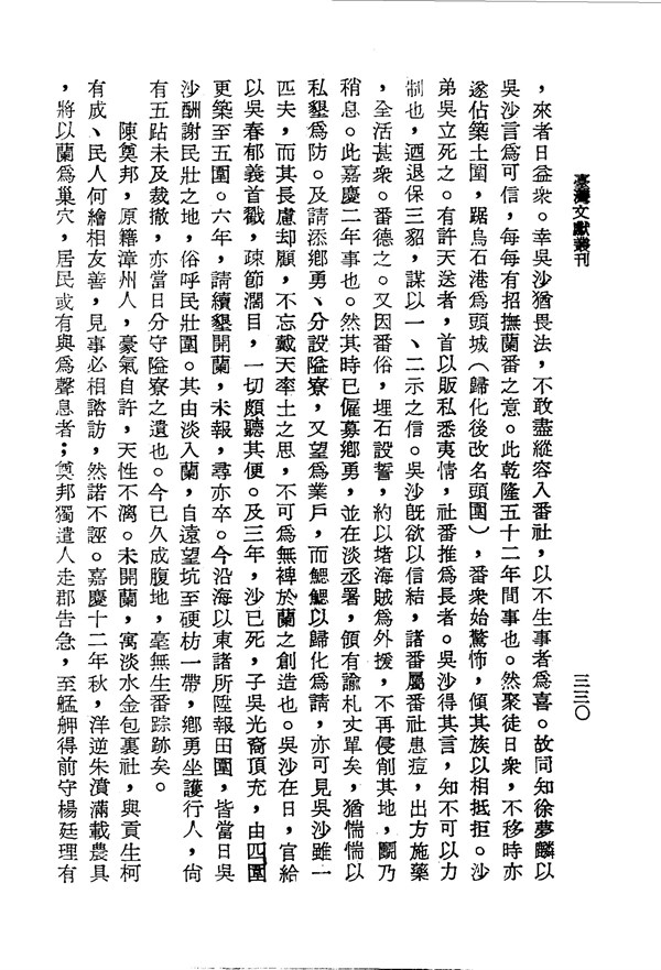 吳沙為番人治痘病 噶瑪蘭廳志卷七 台灣文獻史料叢刊 -