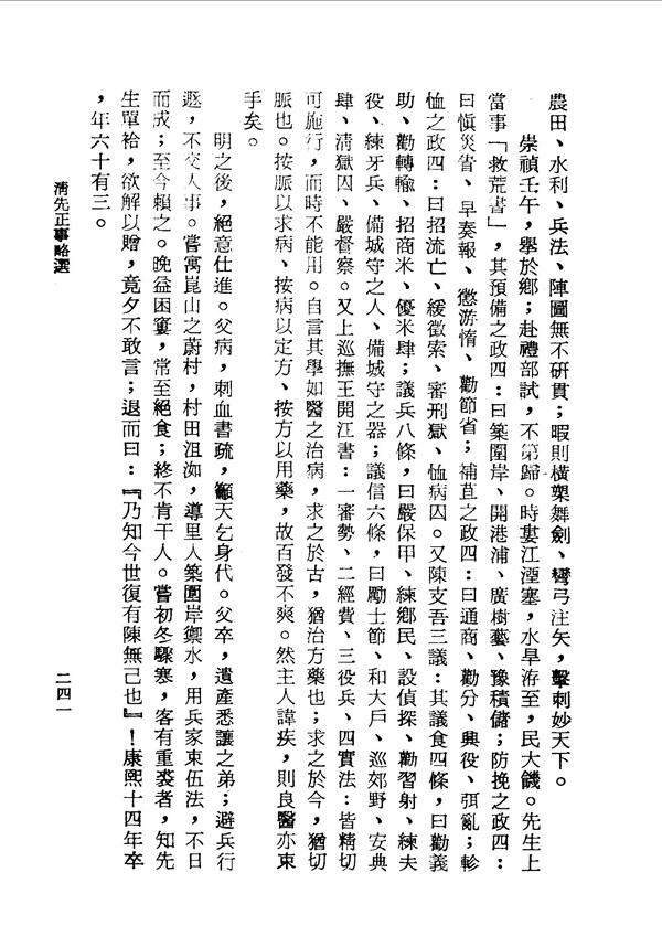 聖祖因讀書過勞而咯血 清先正事略選卷五 台灣文獻史料叢刊