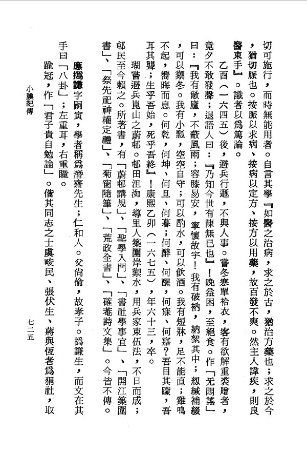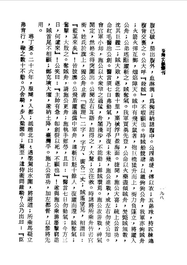 醫生要求施公七天內不要動氣以療傷 清先正事略選卷二 台灣文獻史料叢刊 -